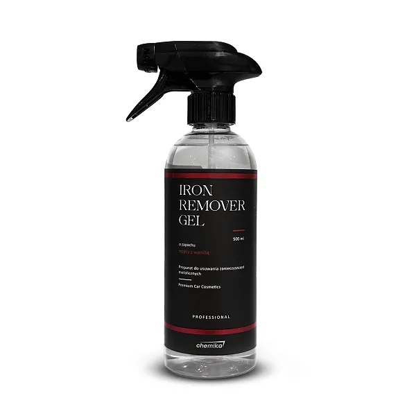 CHEMIKA Iron Remover Gel to innowacyjny żelowy preparat do czyszczenia felg, stworzony z myślą o skutecznym usuwaniu najtrudniejszych zabrudzeń. Dzięki unikalnej formule i zawartości inhibitora korozji preparat doskonale radzi sobie z osadami z klocków hamulcowych, kurzem, brudem, rdzą i zabrudzeniami metalicznymi.Żelowa konsystencjaŻelowa formuła preparatu zapobiega spływaniu środka z powierzchni, co pozwala na wydłużenie czasu działania substancji aktywnych. Dzięki temu środek skuteczniej dezynfekuje i dokładnie dociera do trudnodostępnych miejsc oraz na powierzchnie pionowe. To rozwiązanie gwarantuje lepsze efekty czyszczenia i większą wygodę użytkowania.Widoczna reakcja barwnaCHEMIKA Iron Remover Gel wchodzi w reakcję z osadami, zmieniając kolor na czerwono-fioletowy. Ta cecha nie tylko ułatwia kontrolę działania preparatu, ale także wskazuje miejsca wymagające dodatkowej uwagi.Inhibitor korozji dla lepszej ochronyTo, co wyróżnia CHEMIKA Iron Remover Gel na tle konkurencji, to zastosowanie inhibitora korozji. Dzięki temu preparat skutecznie czyści, a jednocześnie chroni felgi i inne metalowe powierzchnie przed dalszym powstawaniem rdzy. Produkt jest odpowiedni do stosowania na felgach aluminiowych, stalowych, chromowanych, lakierowanych i innych powierzchniach metalowych. Jest również bezpieczny dla szyb i lakieru samochodowego.Wydajność i wygoda stosowaniaŻel do czyszczenia felg CHEMIKA Iron Remover Gel to skoncentrowany preparat, który działa skutecznie bez potrzeby stosowania specjalistycznych narzędzi czy dodatkowych etapów czyszczenia. Optymalna lepkość żelu sprawia, że aplikacja jest wygodna, a użytkowanie przyjemne.Sposób użyciaProdukt gotowy do użycia – nie rozcieńczać.Przed użyciem wstrząsnąć.Sprawdzić działanie preparatu na niewielkiej, mało widocznej powierzchni.Oczyścić powierzchnię z większych zabrudzeń, jeśli to konieczne.Nałożyć żel równomiernie na chłodne felgi, obręcze kół lub lakier.Pozostawić na 1-3 minuty, aż pojawi się czerwono-fioletowe zabarwienie.Spłukać dużą ilością wody pod ciśnieniem.PrzeciwwskazaniaNie dopuścić do wyschnięcia preparatu na powierzchni.Nie stosować w przypadku nadwrażliwości na składniki produktu.